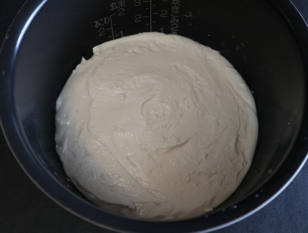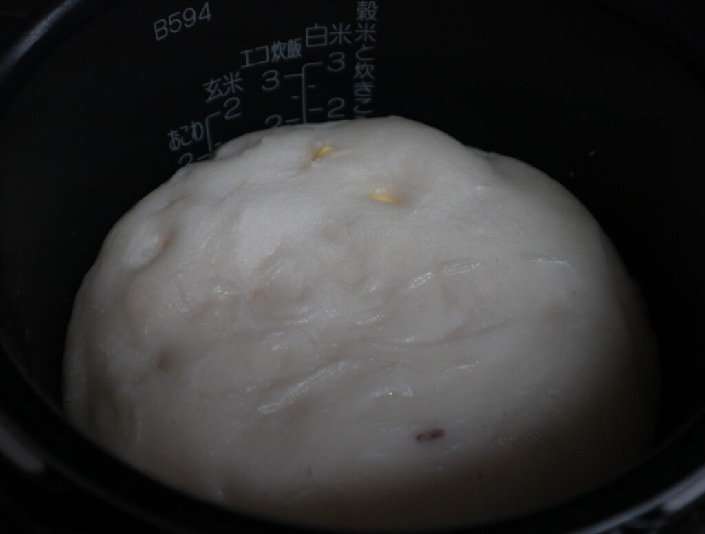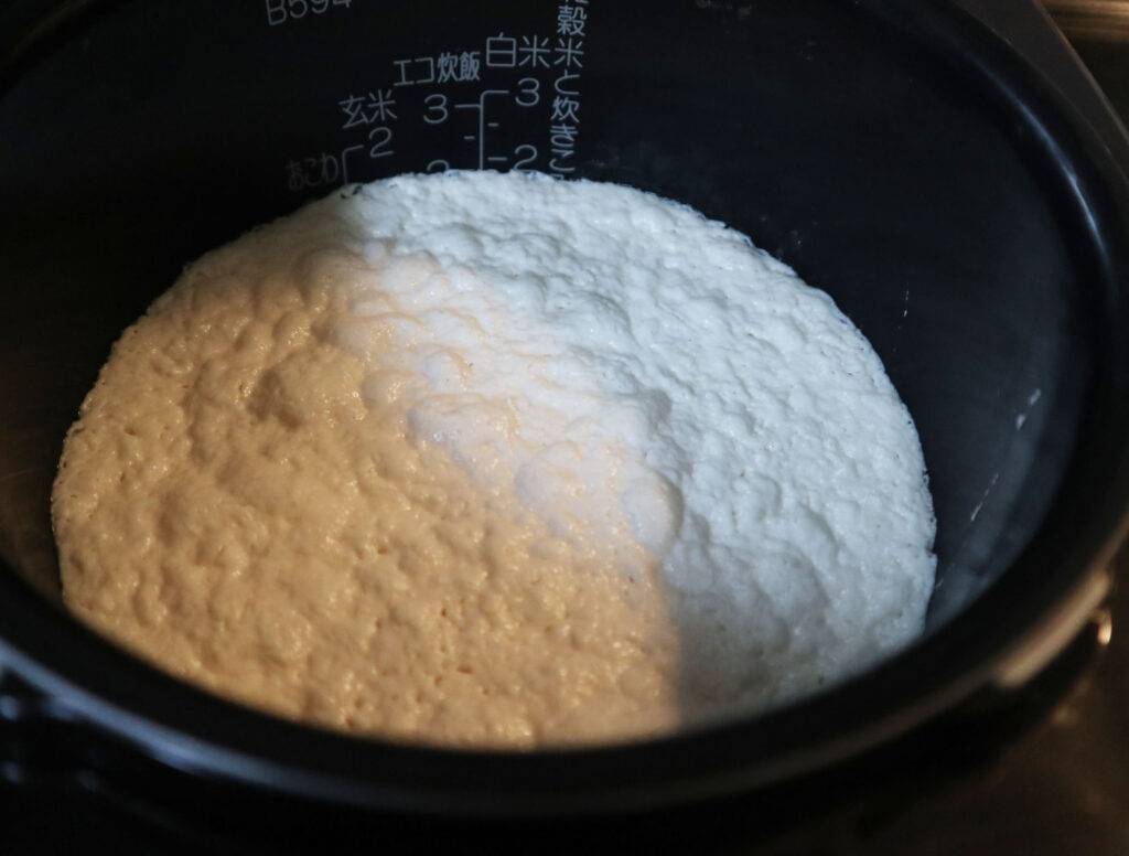 炊飯器に生地を入れて、発酵モードまたは保温モードにスイッチを入れてから20分ほどそのままにします。