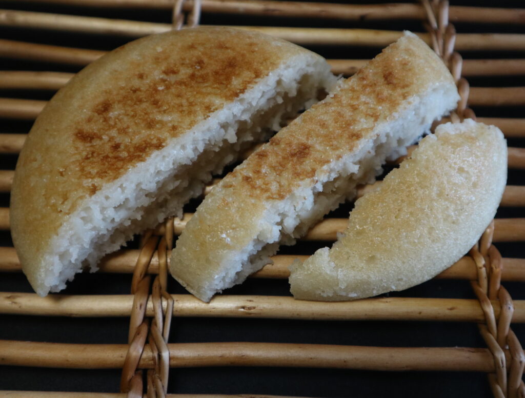 できあがり。外側はカリッと、中はふっくらモチモチに焼けました。小麦粉を使ったパンと香りや風味は違って、お米やお餅のようなもちッとした食感で、腹持ちが良く食べごたえがありますよ。
