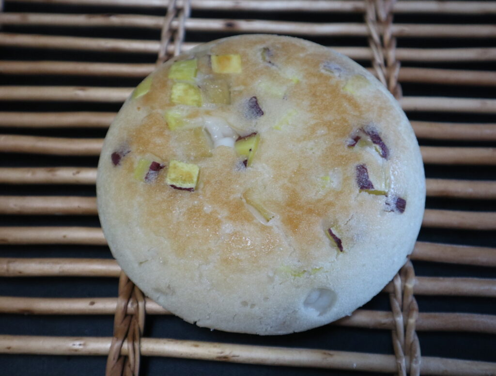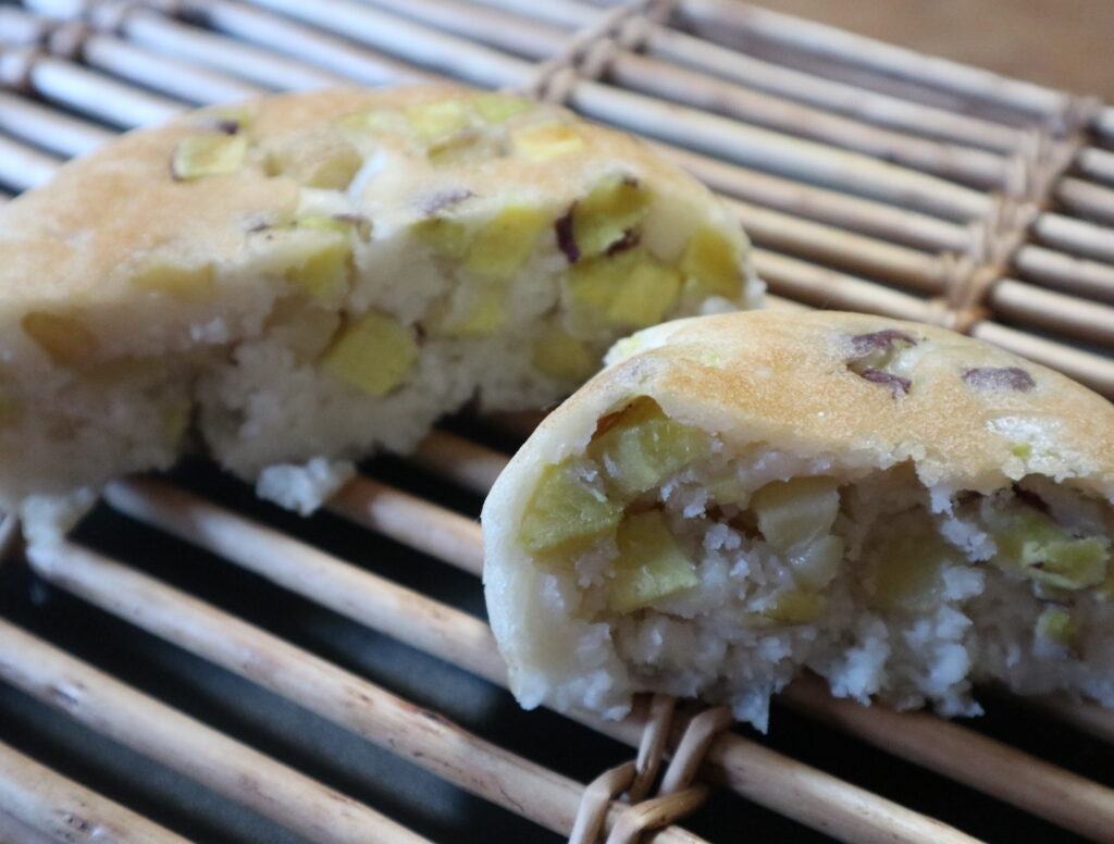 りんごとさつまいもをたっぷり入れた米粉パンのできあがり。具や具の量、切り方は、お好みで調整してみてくださいね。
