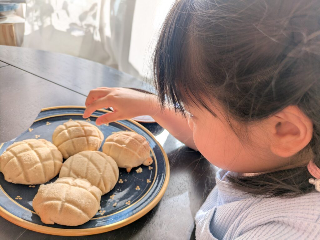 ママが焼いた亀の形のメロンパンに娘さんも大喜び