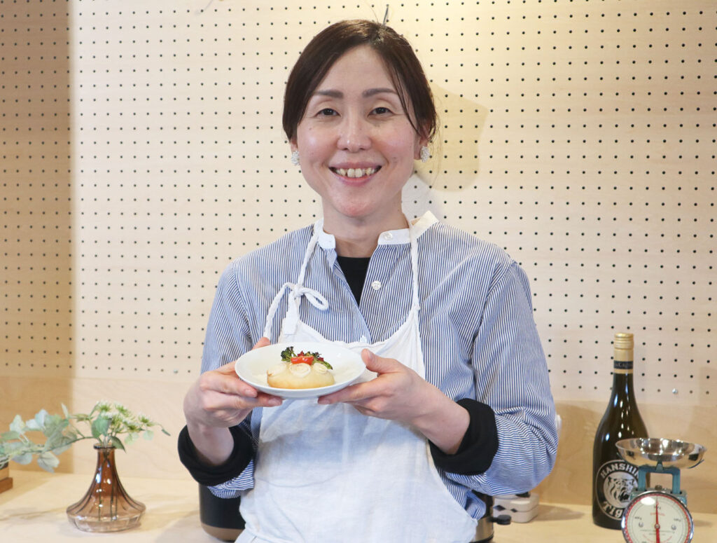 大橋先生は、5歳と9歳の2人の女の子のママ。もともとフランス菓子の学校で学び、パティシエとして焼き菓子のイベントに参加したり委託販売を行っていました。出産後に米粉に出会い、現在は米粉パンとお菓子の教室を主宰しています。