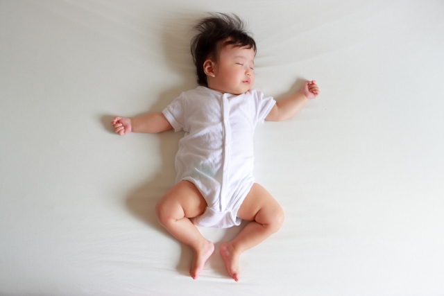 暑がりで汗っかきの赤ちゃんにとっては、特に寝始めのノンレム睡眠のときは、脳の温度を下げて深く眠ろうとするので、冬でも、お母さんとお父さんが思うより涼しく、少し寒くないかと思うくらいの薄着がちょうどいいのです。夏はエアコンで22~24度程度まで室温を下げてあげるのがおすすめです。