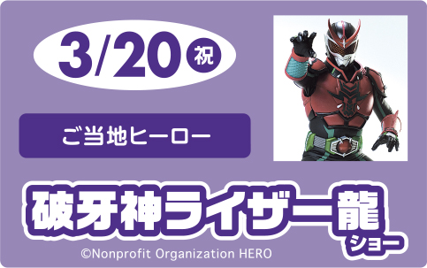 3月20日(金・祝)にご当地ヒーロー「破牙神ライザー龍」ショーを開催します!