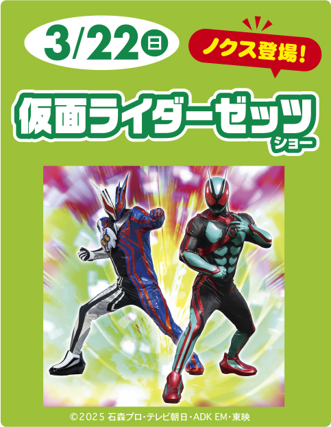 3月22日(日)に仮面ライダーゼッツショーを開催します!