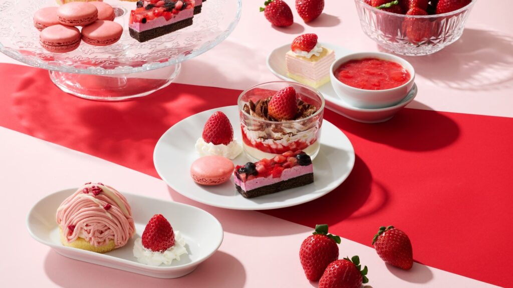 中でもストロベリーティラミス、ケーキやマカロンも載った、「ご褒美アソート」はとても贅沢。見た目も味も、色々ないちごを味わえる一皿です。